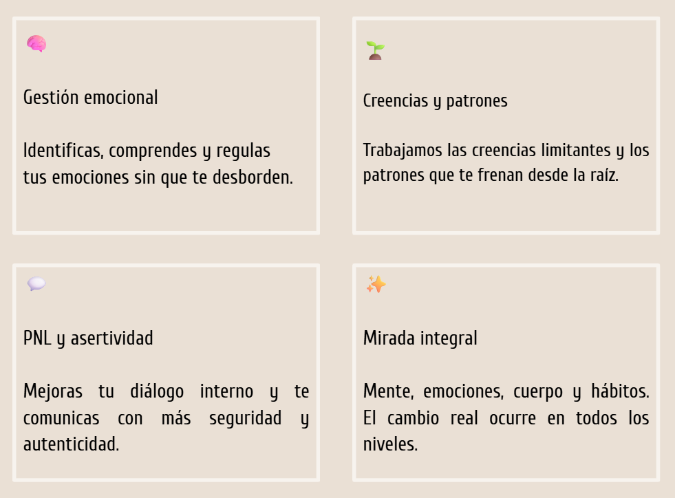 El resultado no es solo sentirte mejor un día. Es adquirir herramientas reales para avanzar con claridad, sin que la ansiedad, la inseguridad o el miedo dicten cómo vives.